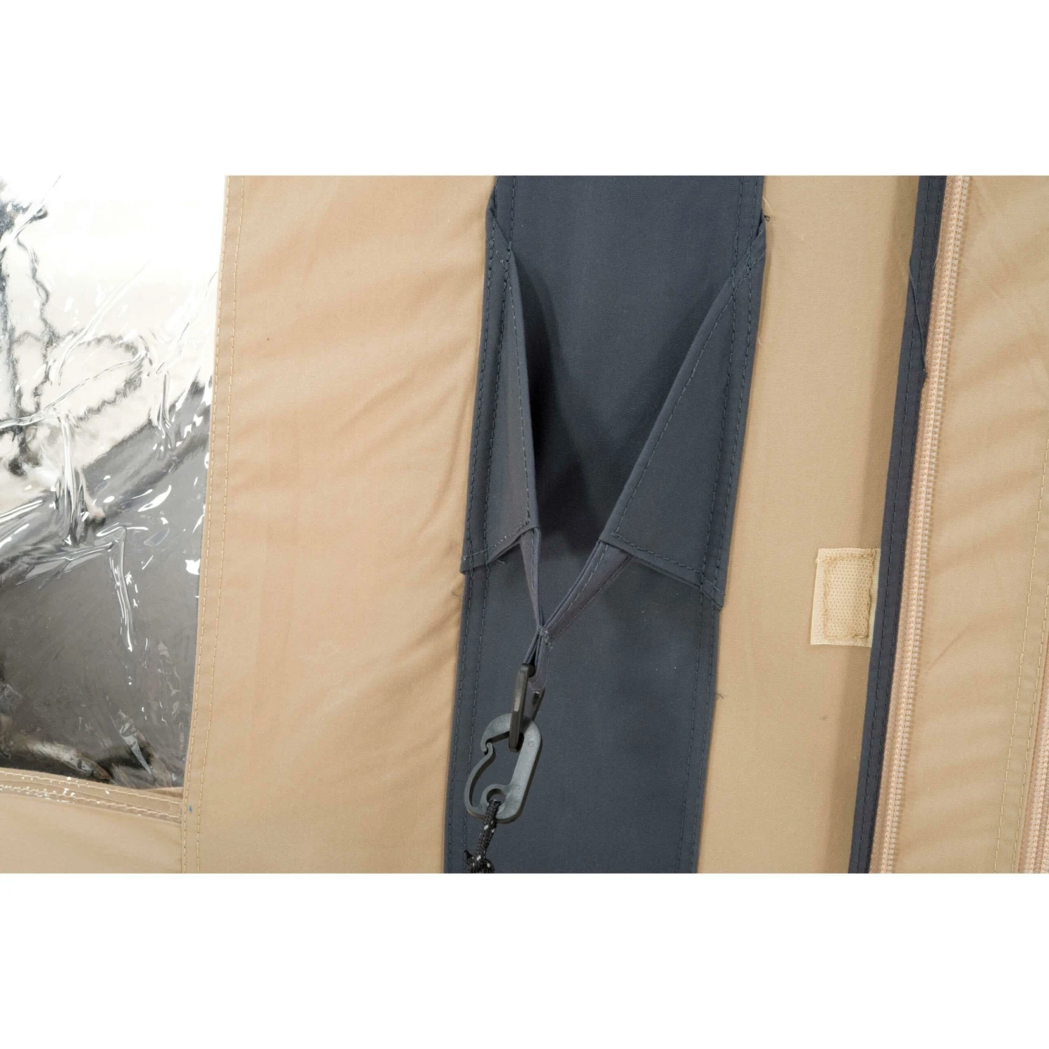 De opblaasbare tent heeft een brede luifel met een gecombineerde wand en zijdeuren, inclusief horren. Het woongedeelte van de tent heeft een zij-ingang en de deur is extra breed. De twee slaapcabines zijn royaal en maar liefst 230 centimeter lang. Naast deze maat zorgen de verduisterde binnententen ook voor meer slaapcomfort.