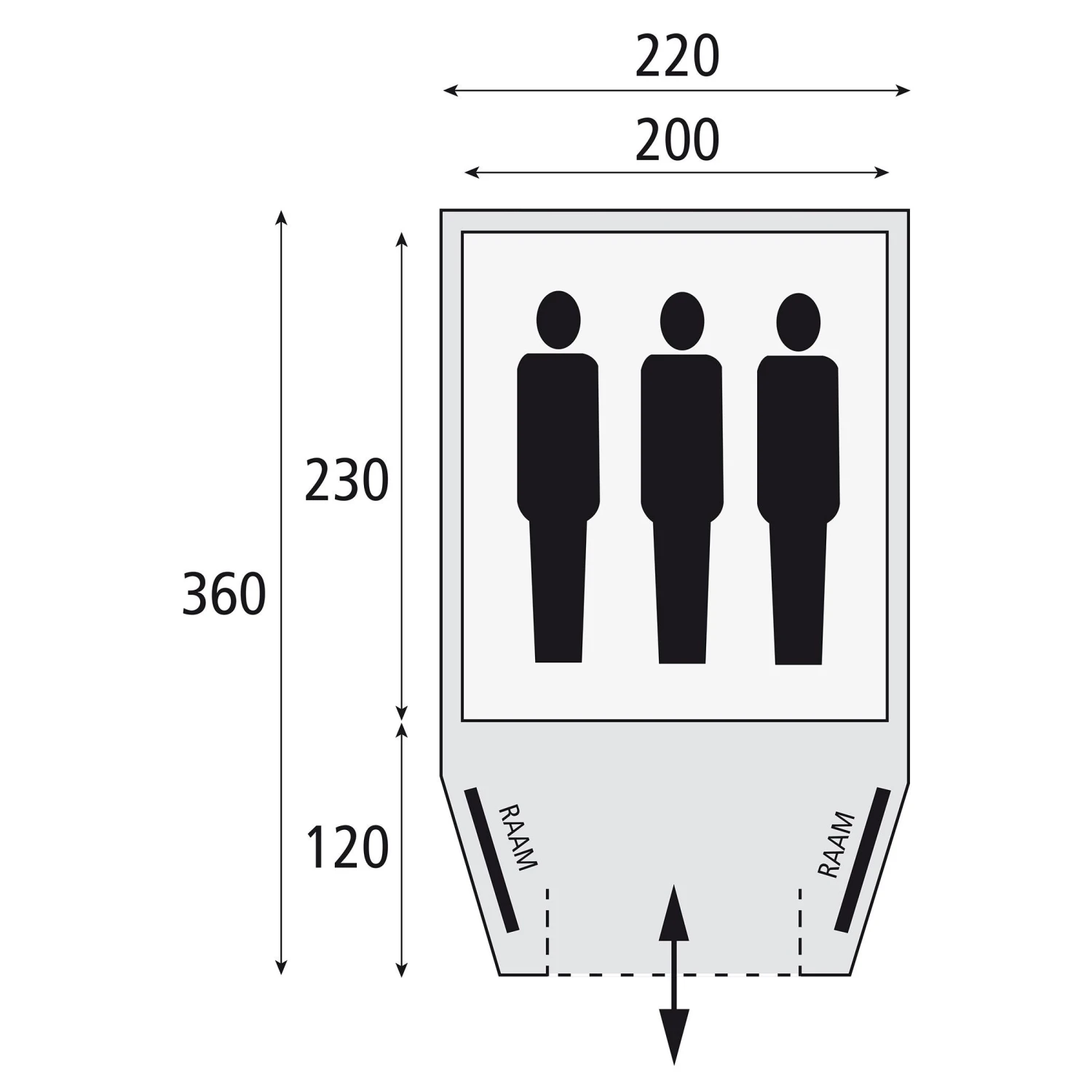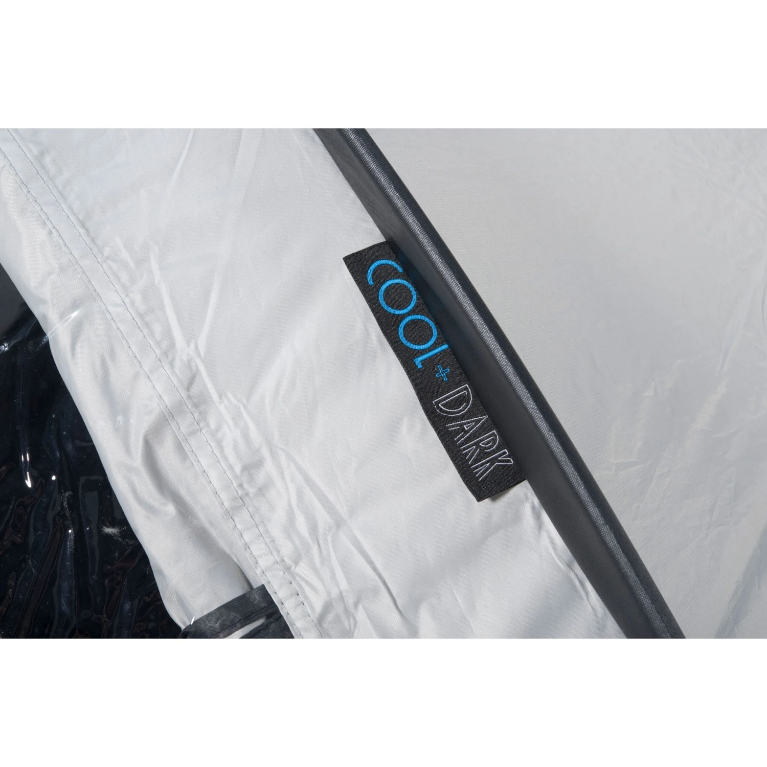 De Stelvio 220 koepeltent is uitgerust met één slaapcabine met een extra lange lengte van 230 cm. De donkere cabine is voorzien van een ‘Climate Control Systeem’ wat zorgt voor extra koelte. Ook heeft de binnentent handige opbergvakken om uw spullen in op te bergen. De leefruimte heeft een apart inklikbaar PE grondzeil.