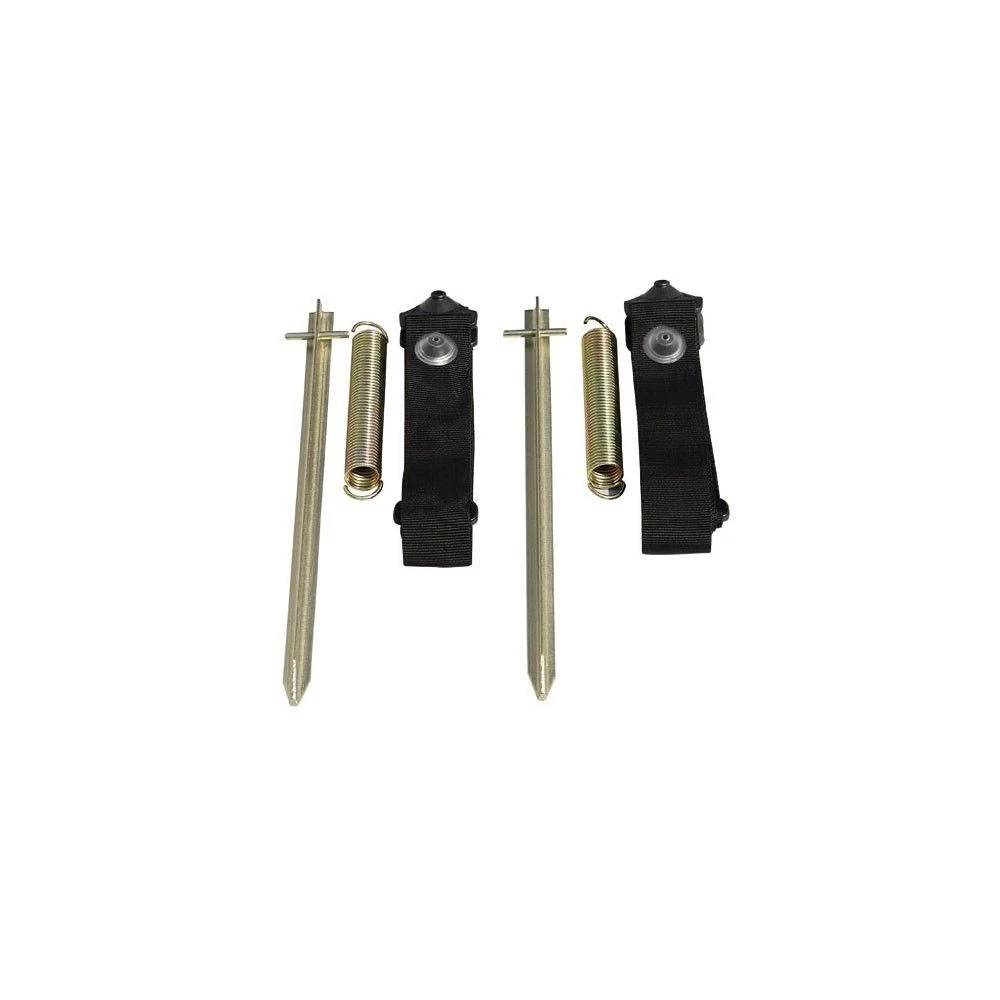 De Mistral set bestaat uit 2 afspanriemen, 2 PVC afdekkapjes, 2 stalen spanveren en 2 ankerharingen.