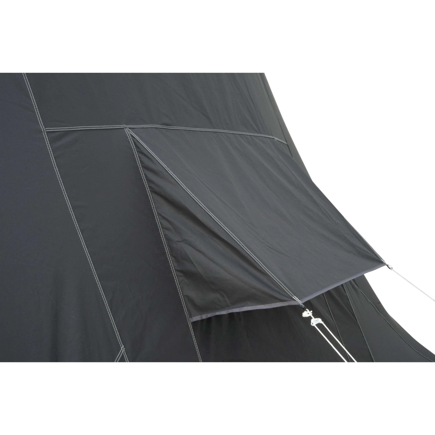 Achterin de tent zijn slaapcabines geplaatst met 3 compartimenten en oprolbare scheidingswanden met extra zware 10 mm ritsen. De slaapcabines zijn extra lang, namelijk 240 centimeter. Zo zijn de ruimste ook geschikt voor grote opblaasbedden. Aan de voorkant van de slaapcabine kan een organizer set worden bevestigd, dit is een apart product. De royale leefruimte is voorzien van grote pvc-ramen met horrengaas voor optimaal zicht en ventilatie. De gordijnen met een variabel verduistersysteem zijn de bedienen vanuit de leefruimte. De voorwand van de leefruimte is uitneembaar voor meer leef- of luifelruimte. De luifel heeft een voorwand die u apart kunt aanschaffen, om de leefruimte groter te maken of insectvrij buiten te zitten.