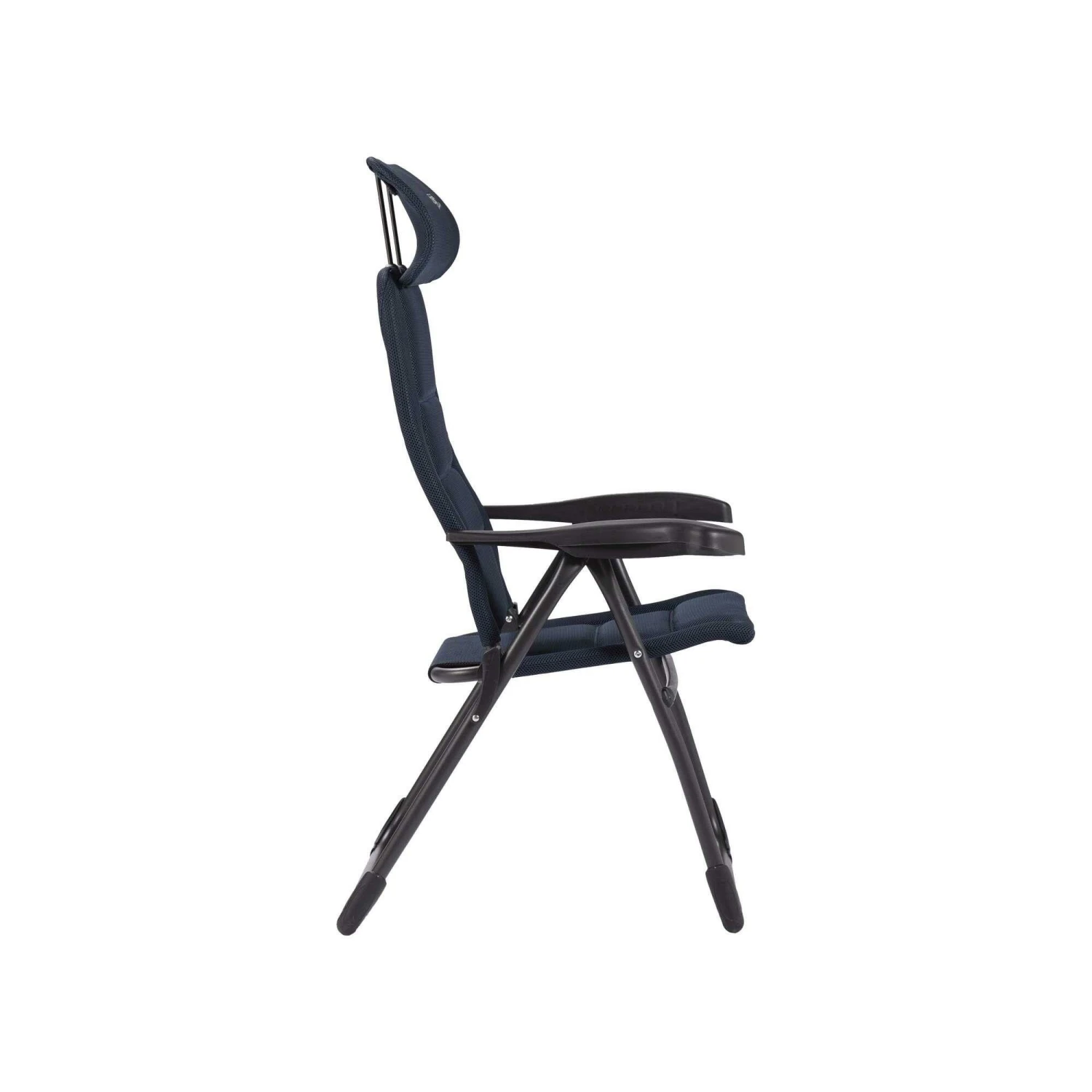 De Crespo AP-215 Air-Deluxe Compact campingstoel blauw is een inklapbare stoel die zeer gemakkelijk mee te nemen is. De campingstoel van Crespo heeft een verstelbare hoofdsteun, is lichtgewicht en extra stevig. De rugleuning is te verstellen in zeven verschillende standen. De vulling is zeer comfortabel, luchtdoorlatend en sneldrogend ten opzichte van traditionele schuimvulling. De stoel is voorzien van ergonomisch gevormde armleggers, rugleuning en zitting. Het geanodiseerde U-frame draagt bij aan extra stevigheid en stabiliteit.