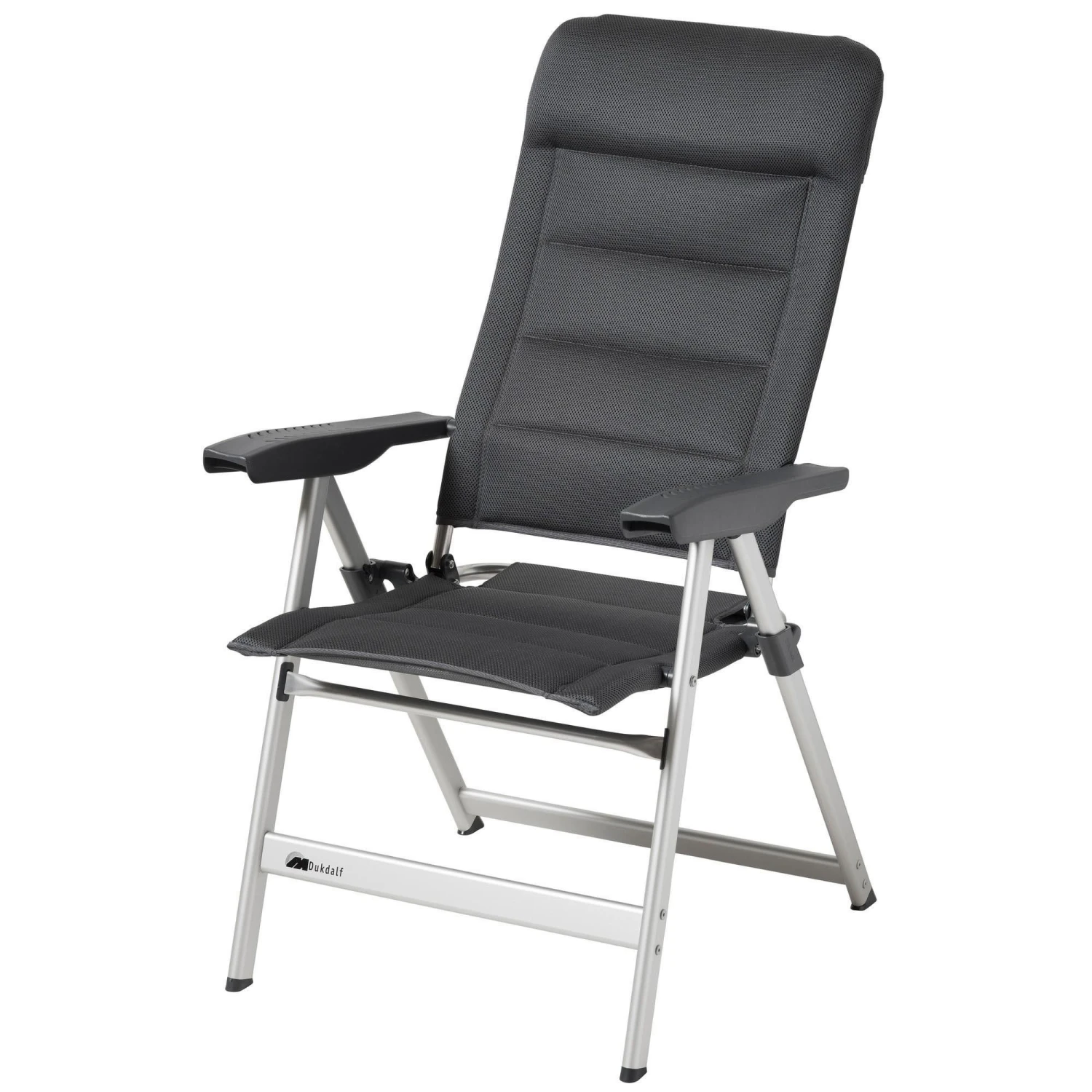 De Dukdalf Presto is een luxe kampeerstoel met een ergonomisch gevormde rug, een extra diepe zitting en extra brede nylon armleggers. De Presto campingstoel en heeft een stevig geanodiseerd en inwendig versterkt aluminium frame en is verstelbaar in tien verschillende, comfortabele posities.