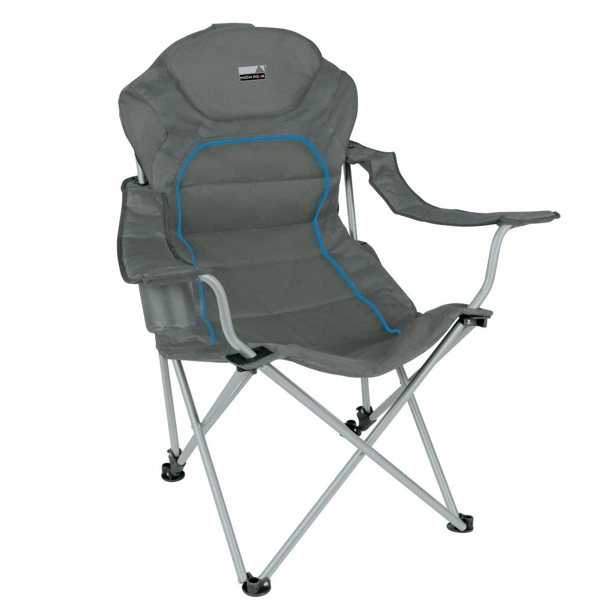 Deze High Peak Alicante campingstoel heeft polyester bekleding, een stalen frame en wordt geleverd inclusief foedraal. De stoel heeft de afmetingen 62 x 60 x 48/105 cm, een gewicht van 4,6 kg en een draagvermogen van 120 kilogram. De stoel kan in 3 verschillende standen gezet worden en de armsteunen zijn verstelbaar. Doordat de stoel gemakkelijk in te klappen is kan hij overal eenvoudig mee naartoe genomen worden. De stoel beschikt over een geïsoleerde bekerhouder zodat u uw drankje gemakkelijk neer kunt zetten. Tot slot wordt er bij de campingstoel een afneembaar hoofdkussen geleverd.