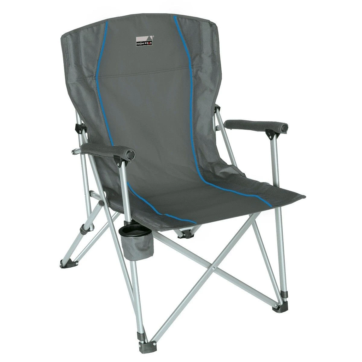 Deze High Peak Malaga campingstoel dunkelgrau blau heeft polyester bekleding en een stalen frame. De stoel is gemakkelijk in en uit te klappen en hierdoor ideaal voor mee op reis. Daarnaast is de campingstoel uitgerust met een bekerhouder waardoor u uw drankje gemakkelijk langs u neer kunt zetten. De afmetingen van de stoel zijn 54 x 45 x 46/95 cm en de campingstoel heeft een gewicht van 4,25 kg met een draagvermogen van 120 kg. De campingstoel is inclusief foedraal.