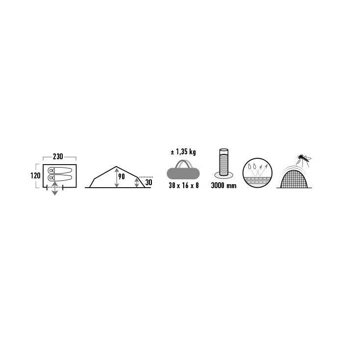 De High Peak Siskin 2.0 LW lichtgewicht tunneltent is heel snel op te zetten. Deze tent heeft namelijk maar 1 stok en het is een enkeldaks tent. Daarnaast is de tent heel compact mee te nemen in de draagtas. Er zijn vier ventilatieopeningen aanwezig voor een goed klimaat in de tent. Er is een organizer geplaatst om kleine spullen in op te bergen en er is een haak waar een lamp aan kan worden gehangen.