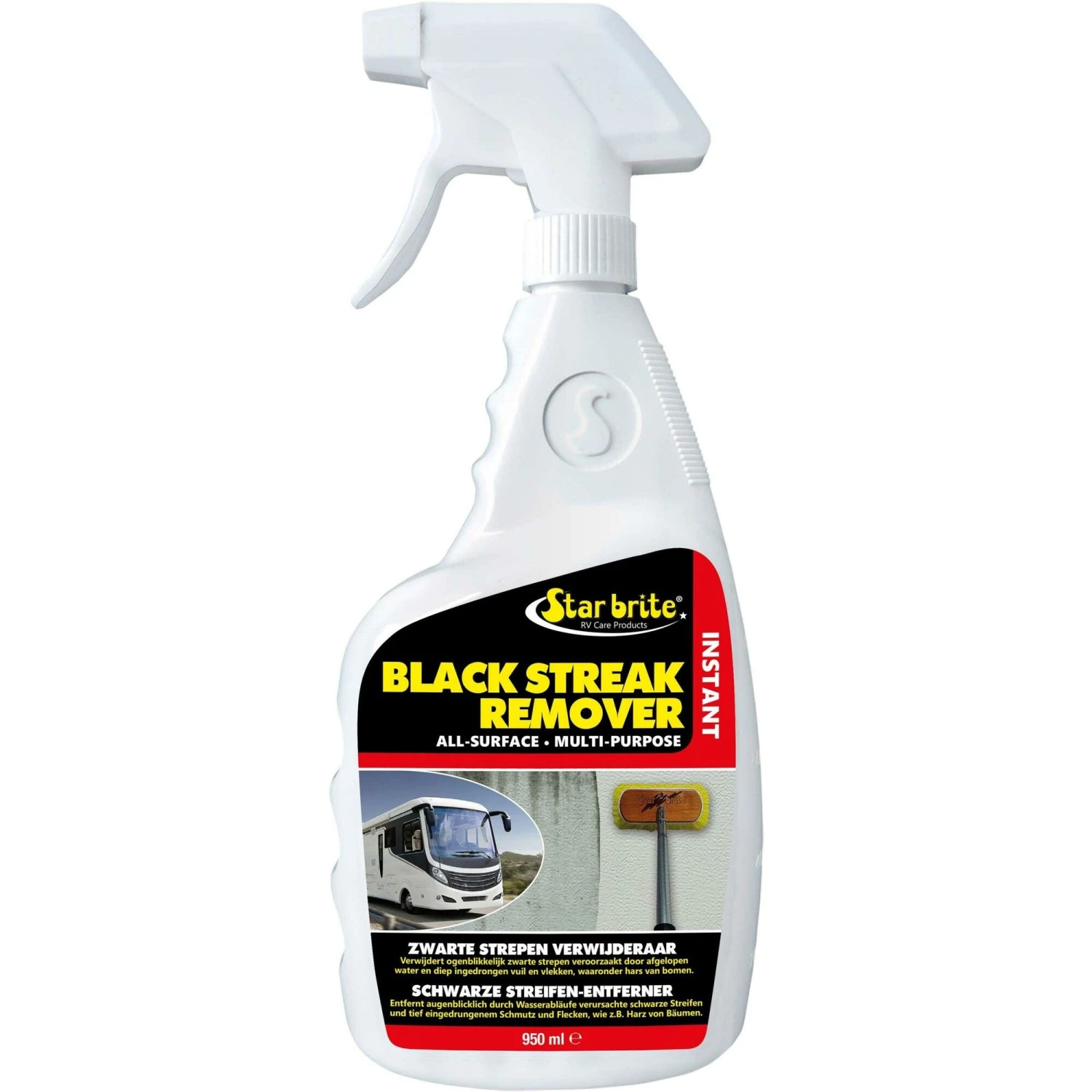 De Star brite Zwarte strepen verwijderaar en reiniger bevat geen bijtende zuren. Deze reiniger verwijdert zwarte strepen die veroorzaakt zijn door afgelopen water en diep ingedrongen vuil en vlekken van bijvoorbeeld hars. Deze reiniger is geschikt voor onder andere polyester, aluminium, metaal, kunststof en vinyl. De reiniger tast de waslaag en het materiaal niet aan.