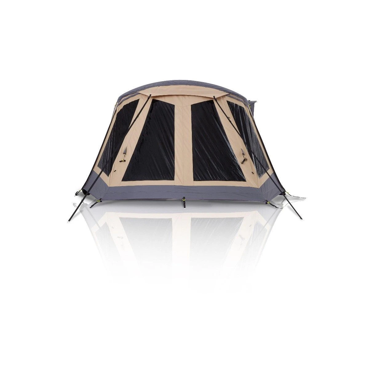 De Aero TL Poly Cotton Pro opblaasbare tent van Zempire Camping is een mooie tent voor gezinnen of stellen die graag ruim kamperen. De tent heeft een grote leefruimte, twee slaapruimtes en een volledig afsluitbare luifel.